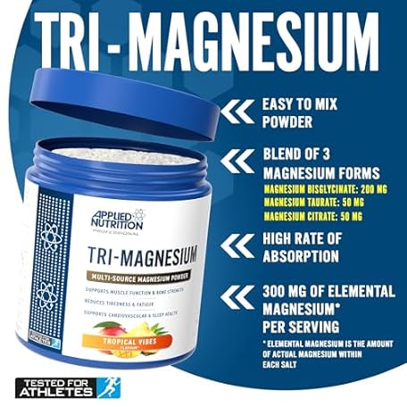 Sản phẩm Applied Nutrition Tri-Magnesium Powder 3 in 1 - Magnesium Glycinate Supplements for Bone, Muscle, Nervous System Sleep Health - 300 mg per Serving (200g - 50 Servings) (Tropical Vibes) đang được bán với giá ưu đãi là $22.7592 tại nước Anh.