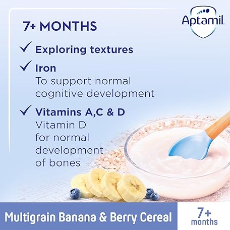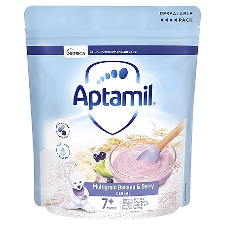 Thông tin sản phẩm Aptamil Multigrain Banana & Berry Porridge Baby Food Cereal, 7+ Months, 200g (Pack of 4)