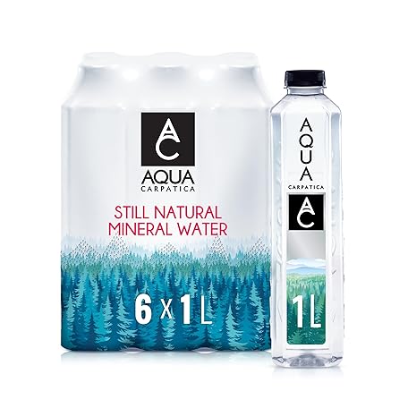 Thông tin sản phẩm AQUA Carpatica 1L x 6 Pure Natural Still Mineral Water - 6-Pack Bottled Water, Virtually Nitrate Free, Low Sodium, Naturally Alkaline, Natural Electrolytes, Premium Multipack 100% Recyclable