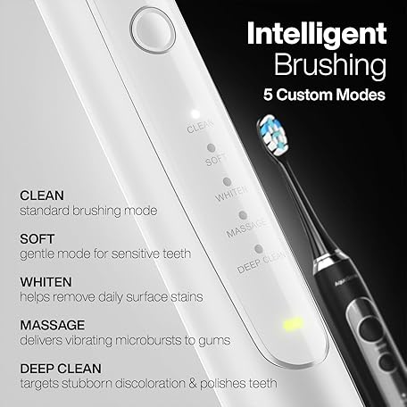 Thông tin sản phẩm Aquasonic Duo PRO Ultra Whitening 40,000 VPM Electric Smart ToothBrushes ADA Accepted - 4 Modes with Smart Timers - UV Sanitizing & Wireless Charging Base - 10 Proflex Brush Heads & 2 Travel Cases