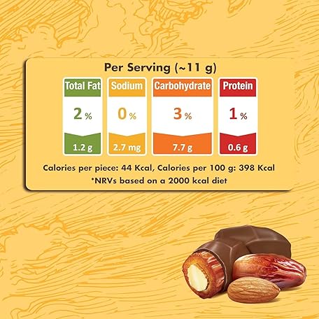 Thông tin sản phẩm Arabian Delights Milk Chocodate with Almond – 90 gm, Chocolate Coated Bite-Sized Snacks, Stuffed w/Golden Roasted Almonds, Dates Snacks & Sweets [UAE] S