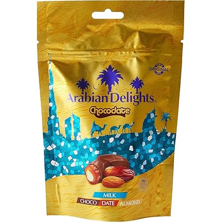Sản phẩm Arabian Delights Milk Chocodate with Almond – 90 gm, Chocolate Coated Bite-Sized Snacks, Stuffed w/Golden Roasted Almonds, Dates Snacks & Sweets [UAE] S đang được bán với giá ưu đãi là $22.9554 tại nước Anh.