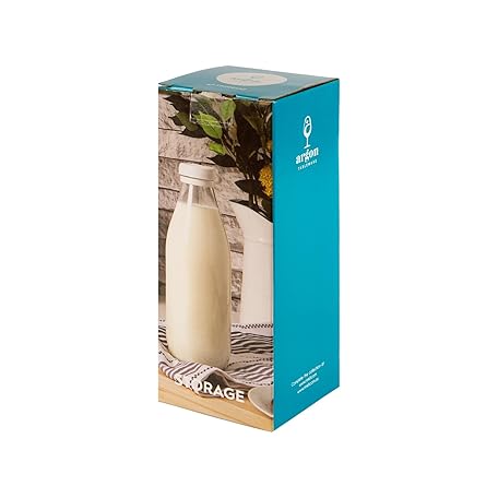 Argon Tableware Vintage Glass Serving Bottle 1 Litre with Silicone Lid - Clear Rustic Style Milk Bottle for Water, Juice, Smoothies, Cocktails, Lemonade - Reusable Farmhouse Jug or Vase