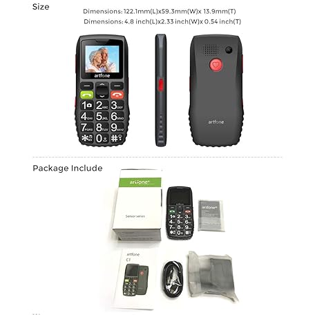 Thông tin sản phẩm artfone C1 Senior Unlocked Big Button Mobile Phone for Elderly, Easy to Use Senior with SOS Emergency Button, 2G GSM Dual SIM, Loud Volume USB-C, 1400mAh Battery, Black