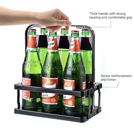Thông tin sản phẩm ASelected Milk Bottle Holder Foldable Plastic Drink Carrier, 6 Holes Reusable Beer Bottle Carrier, Wine Bottle Carrier With Handle, (Black)
