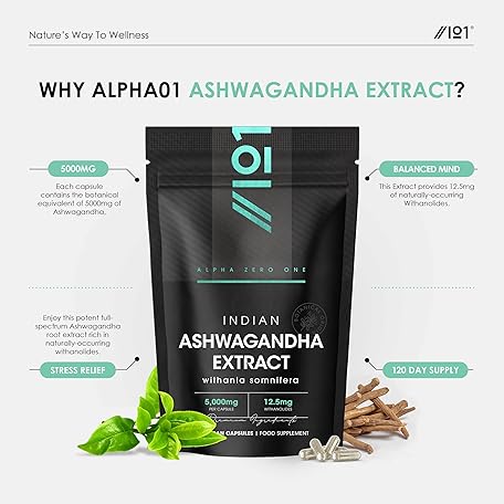 Sản phẩm Ashwagandha Extract 5000mg - 5% Withanolides (12.5mg) - 120 Vegan Capsules - Made with BioPerine® Black Pepper for Higher Bioavailability (4 Month Supply) by Alpha01 đang được bán với giá ưu đãi là $14.3226 tại nước Anh.