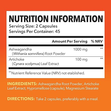 Thông tin sản phẩm Ashwagandha High Strength 1000mg | Stress and Mood Support for Men and Women | Herbal Supplement Ashwagandha Complex with Artichoke Extract | Third-Party Tested, Non-GMO & Gluten Free | 90 Capsules