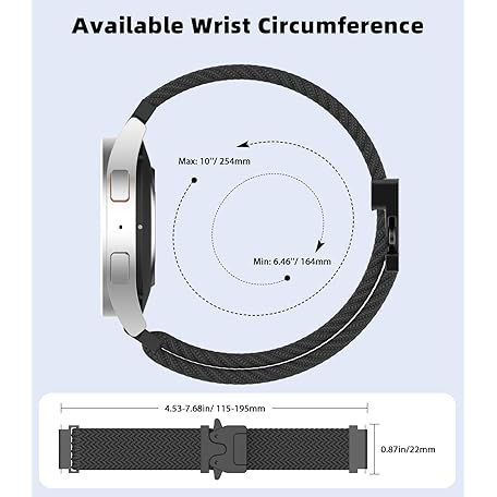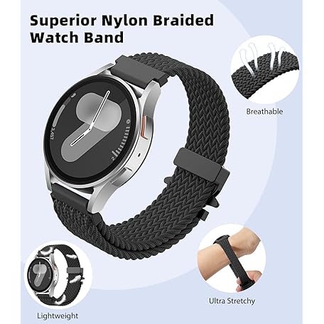 Thông tin sản phẩm Astorgos Braided Strap for Samsung Galaxy Watch 7 6 5 4 FE 40mm 44mm/Watch 6 4 Classic 43mm 47mm 42mm 46mm/5 Pro 45mm/3 41mm/Active 2, 20mm Parachute Buckle Stretchy Nylon Sport Band for Men Women