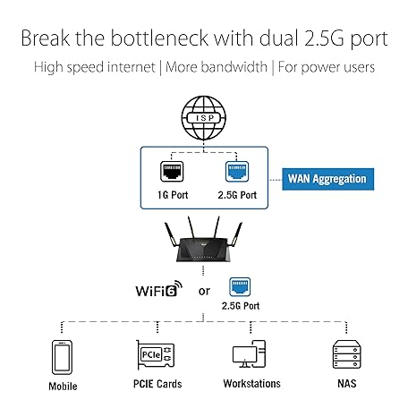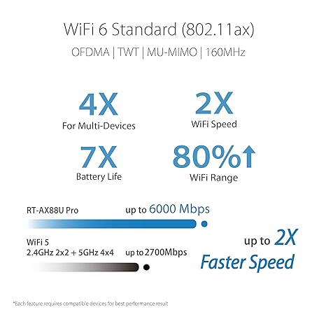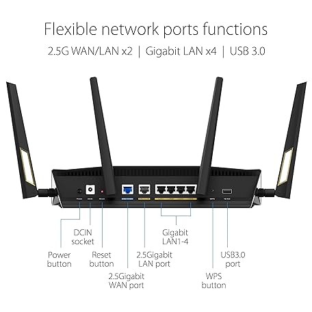 Thông tin sản phẩm ASUS RT-AX88U Pro (AX6000) Dual Band WiFi 6 Extendable Gaming Router, Dual 2.5G Ports, ASUS Rangeboost Plus, Port Forwarding, Subscription-free Network Security, Instant Guard, VPN, AiMesh Compatible