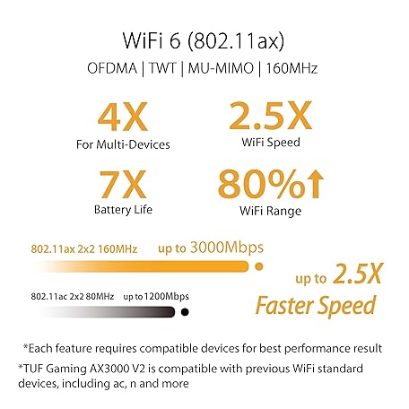 Thông tin sản phẩm ASUS TUF Gaming AX3000 V2 Dual Band WiFi 6 Router with Mobile Tethering (Replacement of 4G 5G routers)2.5Gbps port, Mobile Game Mode, Free Internet Security, AI Mesh, Gear Accelerator, Adaptive QoS