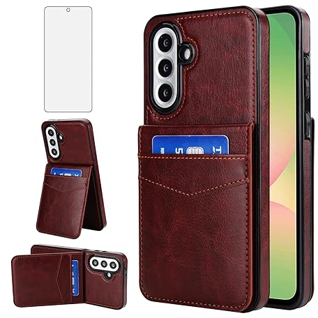 Asuwish Phone Case for Samsung Galaxy A56 5G with Tempered Glass Screen Protector and Credit Card Holder Wallet Cover Stand Leather Cell Accessories A 56 56A LTE SM-A566V Women Men Brown