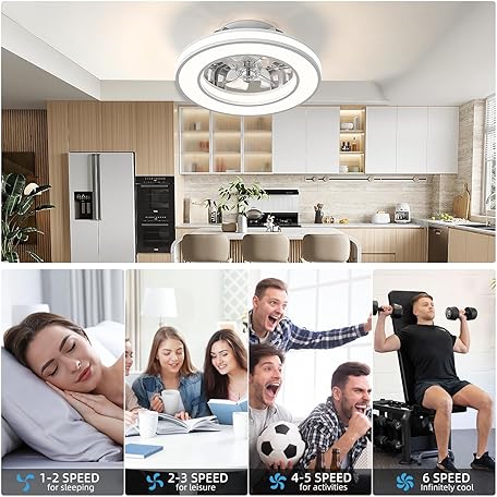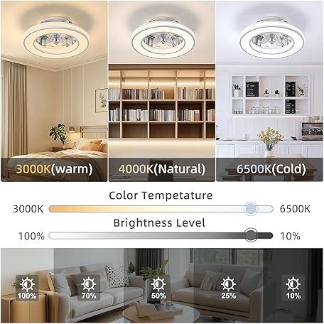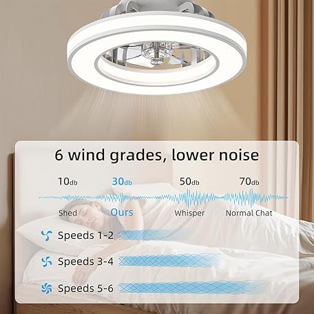 Thông tin sản phẩm Ateroll Ceiling Fans with Lights 40.5CM, Quiet Ceiling Fan Light Reversible Motor, Remote Control 6 Speed, Dimmable 3000K-6500K, Timing, Light Memory, Fan Lights Ceiling for Bedroom Living Room