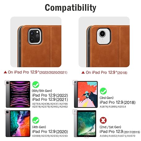Thông tin sản phẩm AUAUA Case for iPad Pro 12.9 6th/5th/4th/3rd Generation 2022/2021/2020/2018, Vegan Leather Stand Cover with Pencil Holder, Auto Sleep/Wake (Brown)