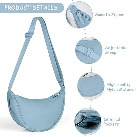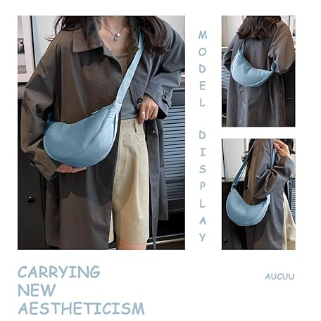 Thông tin sản phẩm Aucuu Crescent Bag, Nylon Dumpling Bag for Women, Hobos Crossbody Bag with Adjustable Strap, Women's Casual Messenger Bag, Solid Color Chest Bag Shoulder Bag for Daily Use