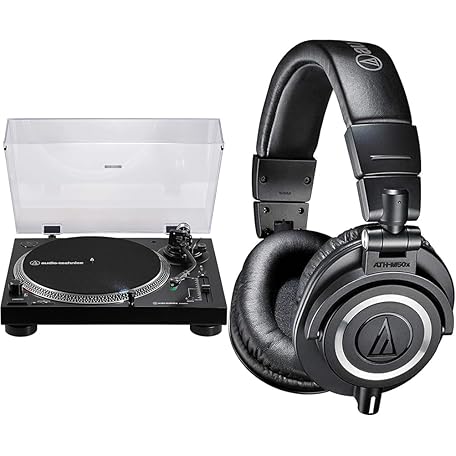 Audio-Technica LP120xBTUSB Direct-Drive Turntable (Bluetooth & USB) Black & M50x Professional Monitor Headphones Black