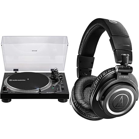 Audio-Technica LP120xBTUSB Direct-Drive Turntable (Bluetooth & USB) Black & M50xBT2 Wireless Headphone Black