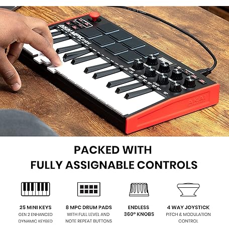 Audio-Technica M50x Professional Monitor Headphones Black & AKAI Professional MPK Mini MK3 – 25 Key USB MIDI Keyboard Controller with 8 Backlit Drum Pads