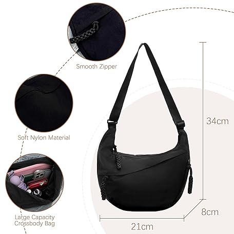 Sản phẩm Auliuse Crescent Cross Body Bag Women - Black Crescent Bag for Women - Nylon Crossbody Bags with Adjustable Strap for Holiday Daily đang được bán với giá ưu đãi là $12.8947 tại nước Anh.