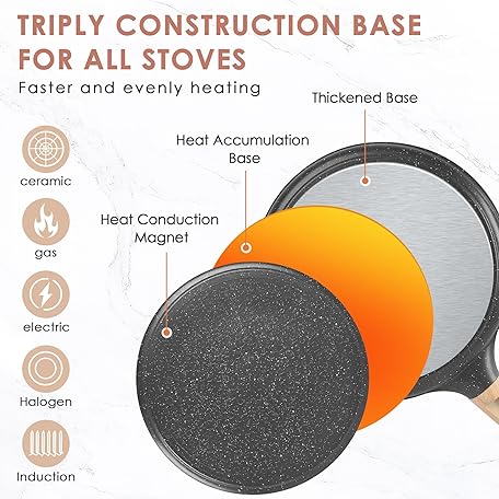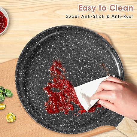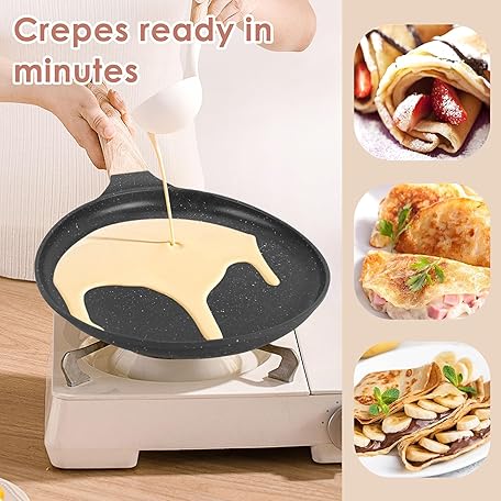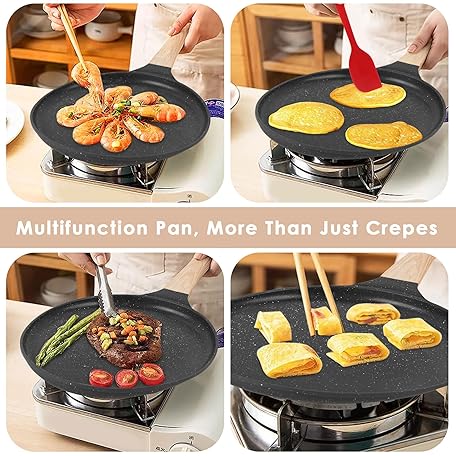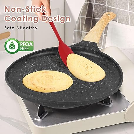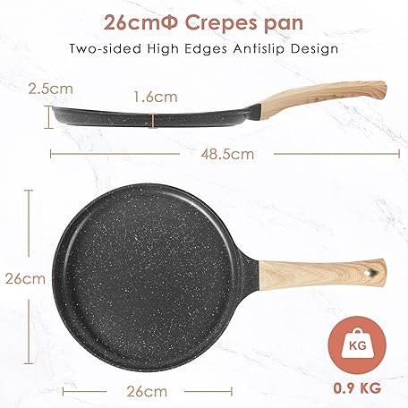 Thông tin sản phẩm AUROAY Crepe Pan Non Stick, 26cm Dosa Pancake Pan Aluminium Flat Skillet Griddle with Stay-Cool Handle for Gas Stove and Induction Hob, PFOA Free