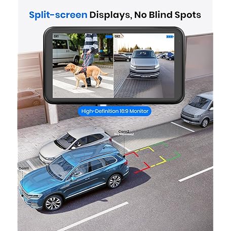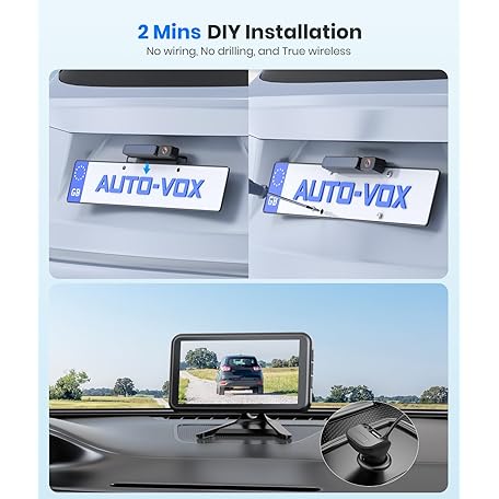 Thông tin sản phẩm AUTO-VOX Solar Wireless Reversing Camera 5" 1080P Monitor: 5000mAh Battery 2 Mins DIY Installation & 2 Split Screen Reverse Cameras Kit, IP69K Waterproof Reversing Camera for Car Van SUV Truck Trailer
