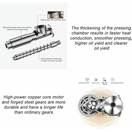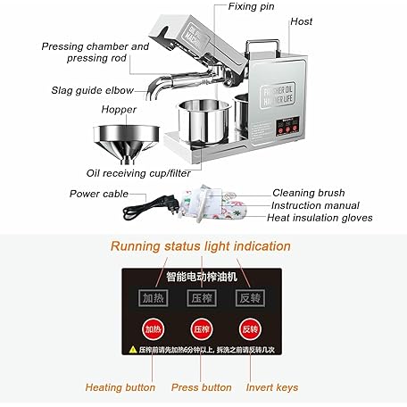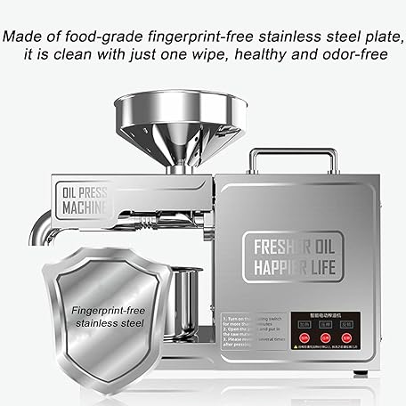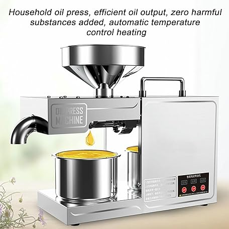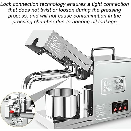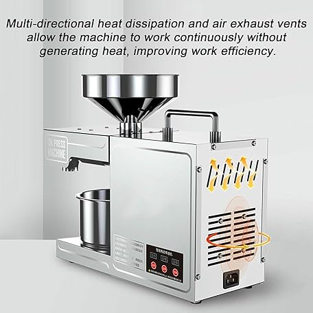Thông tin sản phẩm Automatic Small Oil Press for Flaxseed Peanut Sesame Sunflower, 304 Stainless Steel Hot/Cold Oil Extraction Machine, High Power Pure Copper Motor