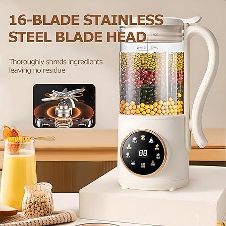 Thông tin sản phẩm Automatic Soy Milk Maker Machine, 1400Ml Nut Milk Maker with 12H Intelligent Reservation, Integrated Cup Body, Led Screen, for Juice, Boil Water, Almonds, Soybeans