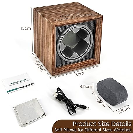 Thông tin sản phẩm Automatic Watch Winder Box Single: Self Winding Watches Shaker Spinner Wooden Watch Turner Rotator Display Case with Quiet Motor - Men Mechanical Wrist Watches Rotating Holder Stand USB Powered, Black