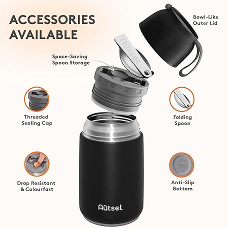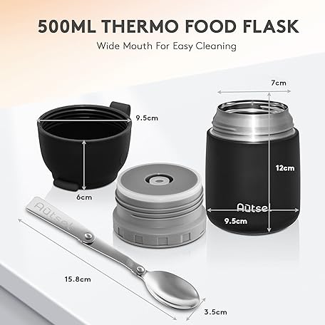 Thông tin sản phẩm Autsel Food Flask for Cold/Hot Food, 500ml Thermal Soup Flask, Insulated Food Container, Stainless Steel Food Jar with Folding Spoon - Keep 12h Cold & Hot