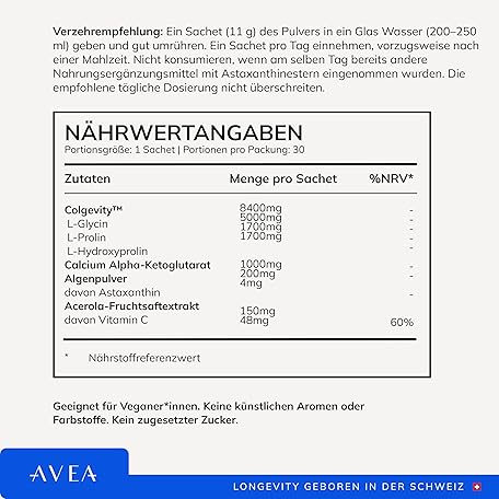 Thông tin sản phẩm AVEA Collagen Activator (30 Collagen Powder Sachets - 8400mg) - Colgevity™ Collagen Activator - 4 x More Effective Than Regular Collagen - for Youthful Looking Skin, Hair & Nails - Vegan Friendly