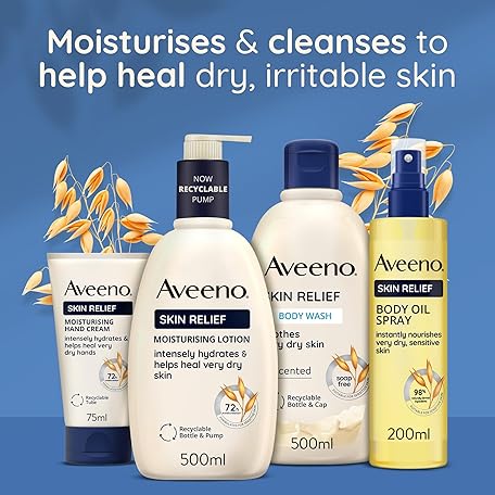 Thông tin sản phẩm Aveeno Skin Relief Moisturising Lotion, With Soothing Triple Oat Complex & Shea Butter, Suitable For Sensitive Skin, 72-Hour Intense Hydration, Helps Relieve Very Dry and Tight Skin, Unscented, 500ml