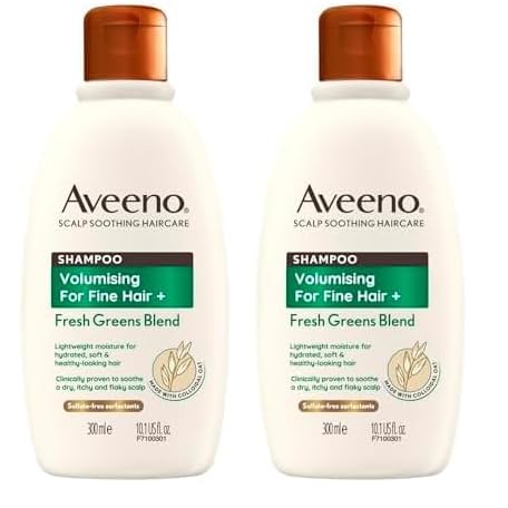 Aveeno Volumising Fresh Greens Scalp Soothing Mint, Cucumber and Rosemary Shampoo for Fine Hair 300ml (Pack of 2)