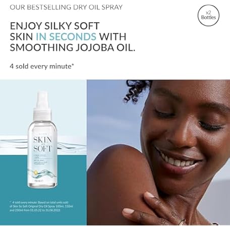 Thông tin sản phẩm Avon Skin So Soft Dry Oil Spray 150ml Duo, Locks in Moisture, Formulated with Jojoba Oil and Vitamin E, Quick Dry Formula, Cruelty Free
