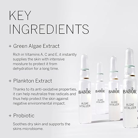 Thông tin sản phẩm BABOR Algae Vitalizer Serum Ampoules for the Face, with Green Algae Extract for a Revitalised Complexion, Vegan Formula, 7 x 2 ml Concentrated Ampoules