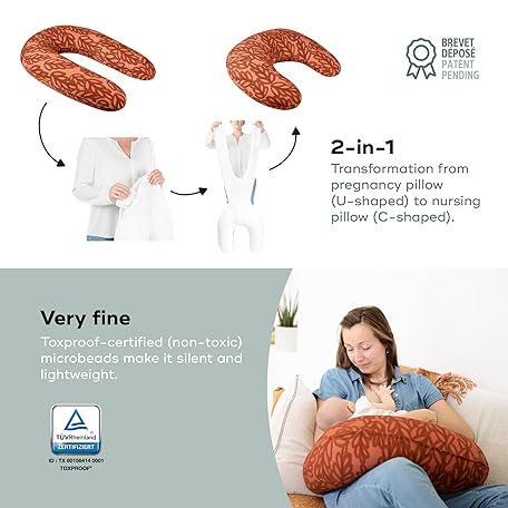 Thông tin sản phẩm Babymoov B.LOVE Organic Cotton 2-in-1 Pregnancy Pillow & Maternity Nursing Support Pillow, TOXPROOF & OEKO-TEX® Certified, Terracotta
