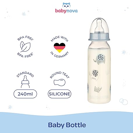 Sản phẩm babynova 240ml Baby Bottle with Anti-Colic Medium Flow Silicone Teat for Newborns - Made in Germany - BPA-Free - Elephants đang được bán với giá ưu đãi là $13.1345 tại nước Anh.