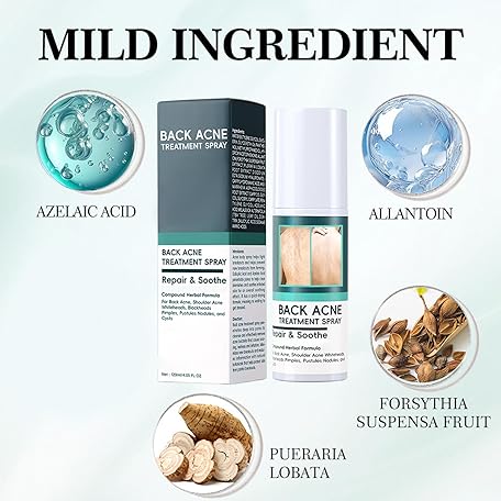 Thông tin sản phẩm Back & Body Acne Spray,Back Acne Treatment Spray for Women,Soothing Acne Reducer Body Serum,Hydrate & Soothing,Suitable for All Skin Type,Sensitive & Oil-120ml