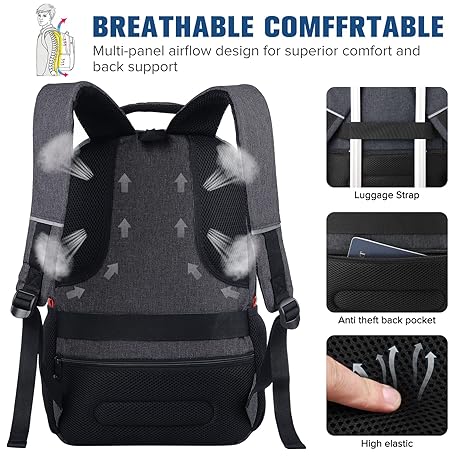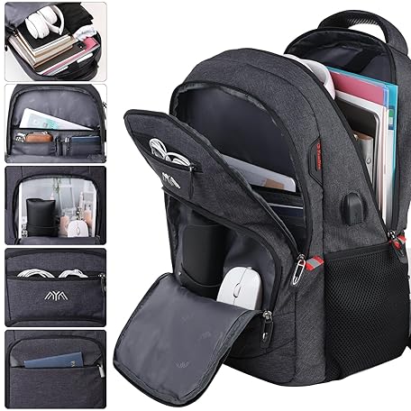 Thông tin sản phẩm Backpack for Men, Teenager Boys School Backpack for 15.6 inch (39.6 cm) Laptop, Backpack for Work, Waterproof Business Daypacks, with USB Charging Port, 35 L, Black 2, 15,6 Zoll
