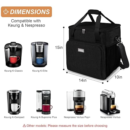 Thông tin sản phẩm BAGLHER Coffee Maker Travel Bag Compatible with Keurig K-Classic、Keurig K-Elite、Keurig K-Compact or Other Accessories, Portable Coffee Maker Case with Shoulder Strap for Travel, Black