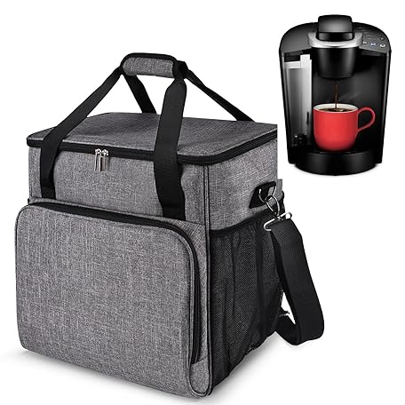 BAGLHER Coffee Maker Travel Bag Compatible with Keurig K-Classic、Keurig K-Elite、Keurig K-Compact or Other Accessories, Portable Coffee Maker Case with Shoulder Strap for Travel, Grey