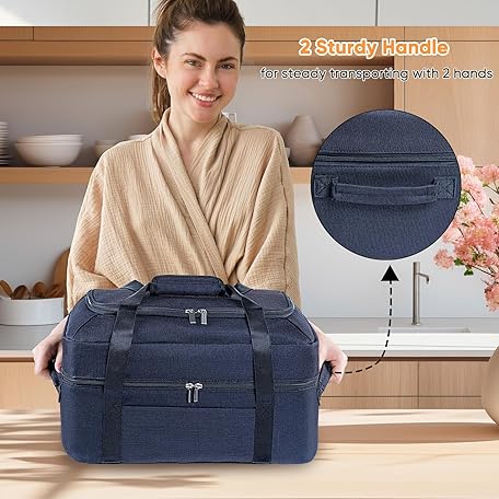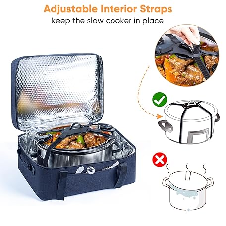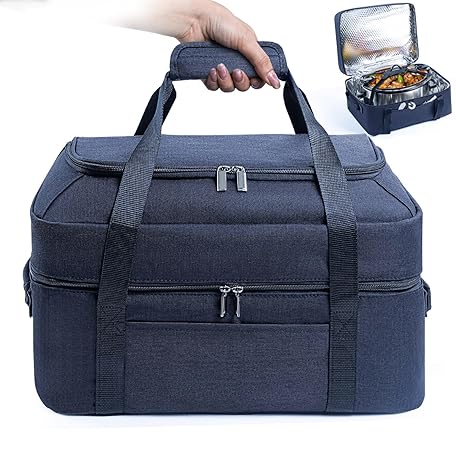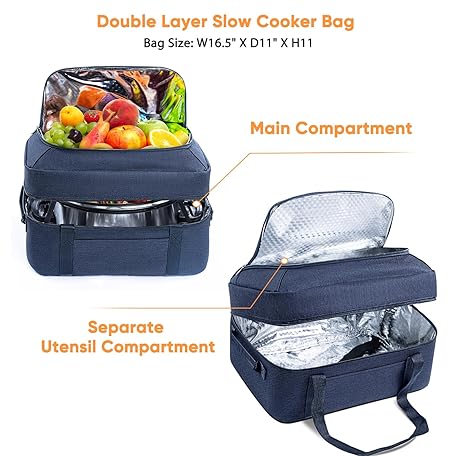 Thông tin sản phẩm BAGSPRITE Double-Layer Slow Cooker Carrying Bag for 6-8 Quart CrockPot and Hamilton Beach Slow Cooker, Travel Bag with Lid Fastener for Crock-pot, Portable Carrier Case Slow Cooker Bag, Black