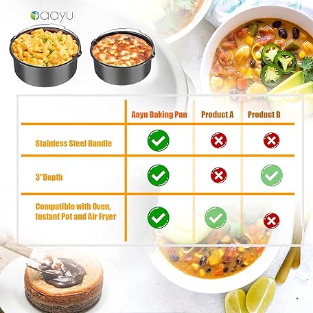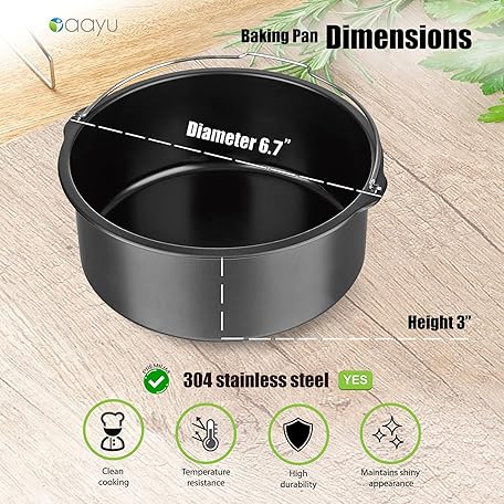 Thương hiệu aayu là cái tên nổi tiếng được rất nhiều khách hàng trên thế giới chọn lựa. Với kiểu dáng đẹp mắt, sang trọng, sản phẩm Baking Pan for Pressure Cookers, Air Fryers and Ovens- For 3 QT to 5QT Pressure Cookers & 3 QT 5.3QT Air Fryers.Fits InstantPot COSORI Ninja Foodi Gowise Philips NuWave Power Farberware & more là sự lựa chọn hoàn hảo nếu bạn đang tìm mua một món cho riêng mình.