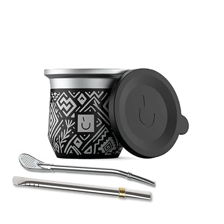 BALIBETOV Yerba Mate Cup – Vacuum Insulated Stainless Steel Gourd with Silicone Cover & Non-Slip Base – Includes 2 Bombillas & Cleaning Brush – Unique Design, Easy to Clean