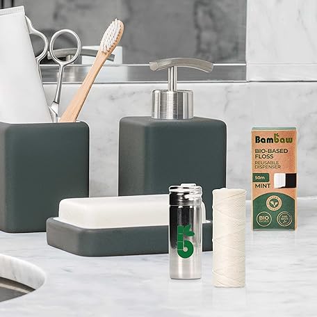 Thương hiệu Bambaw là cái tên nổi tiếng được rất nhiều khách hàng trên thế giới chọn lựa. Với kiểu dáng đẹp mắt, sang trọng, sản phẩm Bambaw Vegan Eco Floss and Stainless Steel Dental Floss Dispenser | Non Plastic Dental Floss | Tooth Floss | Natural Dental Tape | Tape Floss | 1x50 Meter Refill là sự lựa chọn hoàn hảo nếu bạn đang tìm mua một món cho riêng mình.