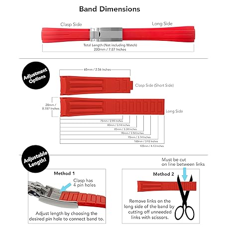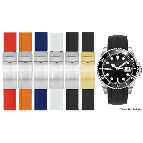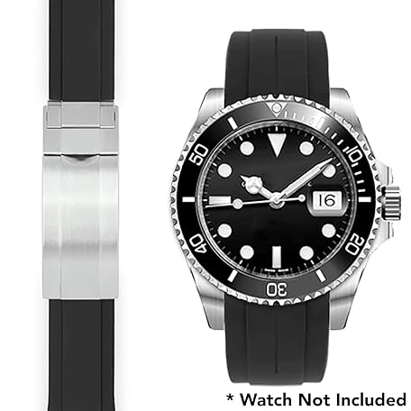 Thông tin sản phẩm Bandini 20mm Curved End Rubber Watch Band with Deployment Clasp for Rolex Submariner, Daytona, Yachtmaster & More, Waterproof, Black, 20mm, Rubber, No Gemstone