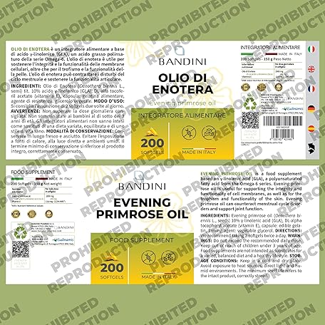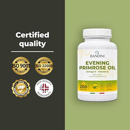 Thông tin sản phẩm BANDINI Evening Primrose Oil 200 Softgel Capsules 2000mg - Antioxidant for Skin, Hair, and Nails - Helpful for Hormone Balance, Menopause, and Menstrual Cycle Disorders - Vegan, Non-GMO Supplement
