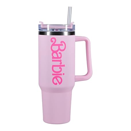 Barbie Official Licensed Pink Logo H2O Bottle, Stainless Steel Vacuum Insulated Tumbler with Lid and Straw for Water, Iced Tea or Coffee | Paladone
