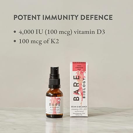Thông tin sản phẩm Bare Biology Beam & Balance Vitamin d3 k2 unflavoured Vegan Spray. Maximum Strength: Vitamin d3 4000 iu, with k2 Vitamin Supplements MK-7. Daily Support for Immunity, Bones, Teeth and Muscles