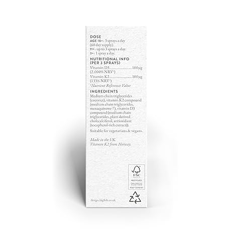 Sản phẩm Bare Biology Beam & Balance Vitamin d3 k2 unflavoured Vegan Spray. Maximum Strength: Vitamin d3 4000 iu, with k2 Vitamin Supplements MK-7. Daily Support for Immunity, Bones, Teeth and Muscles đang được bán với giá ưu đãi là $31.9479 tại nước Anh.