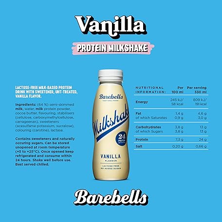 Thông tin sản phẩm Barebells Protein Shake – 24g High Protein Milkshake, Lactose-Free, Ready to Drink, Low Carb – 8x330ml (Vanilla Flavour)
