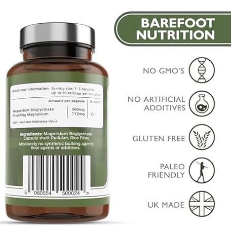 Sản phẩm Barefoot Nutrition Magnesium Glycinate Supplement 560mg - 90 x 1-to-3 a Day Capsules. Pullulan Capsule - Superior Absorption: no Synthetic Binders or additives. Vegan & Paleo Friendly đang được bán với giá ưu đãi là $20.601 tại nước Anh.